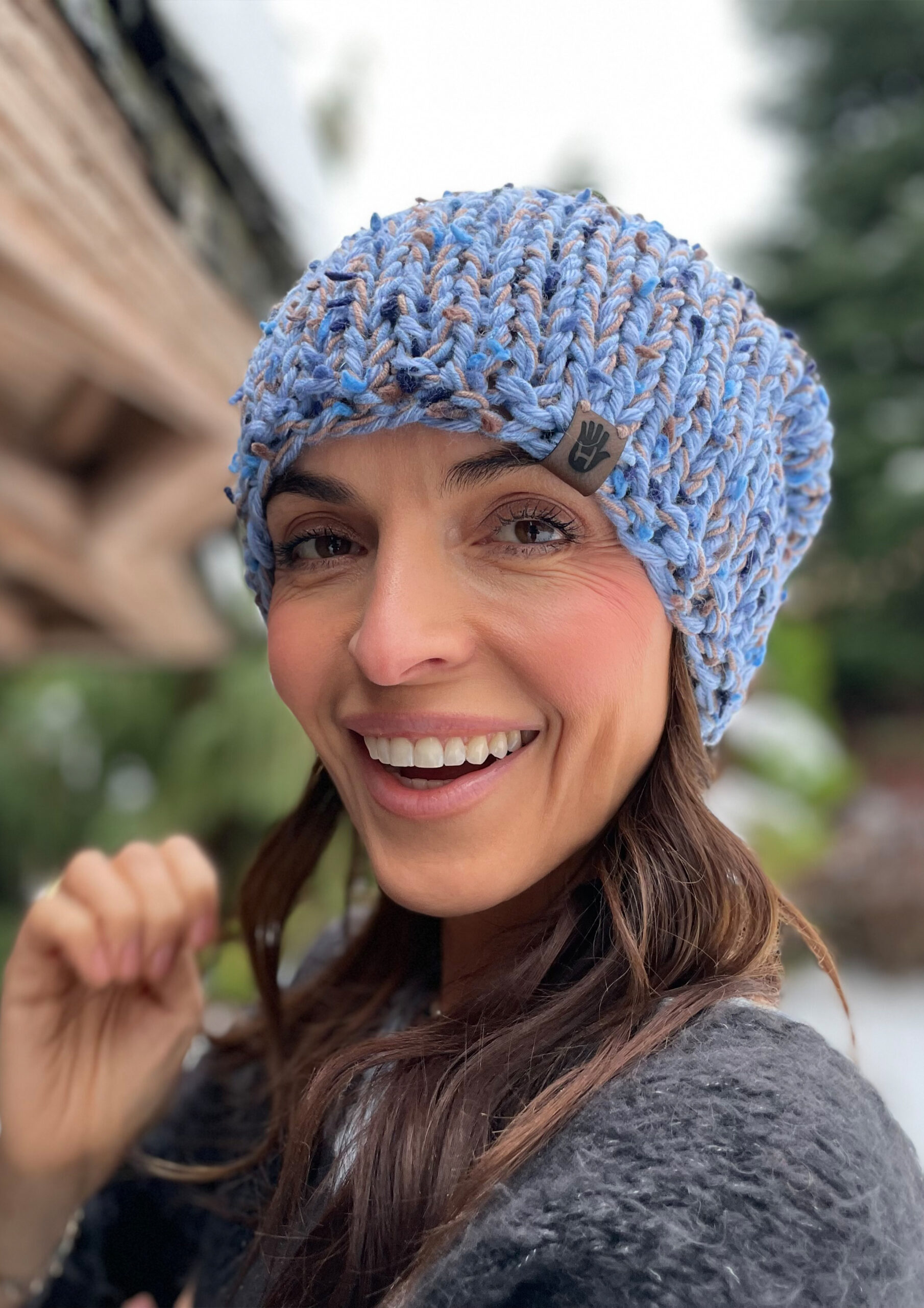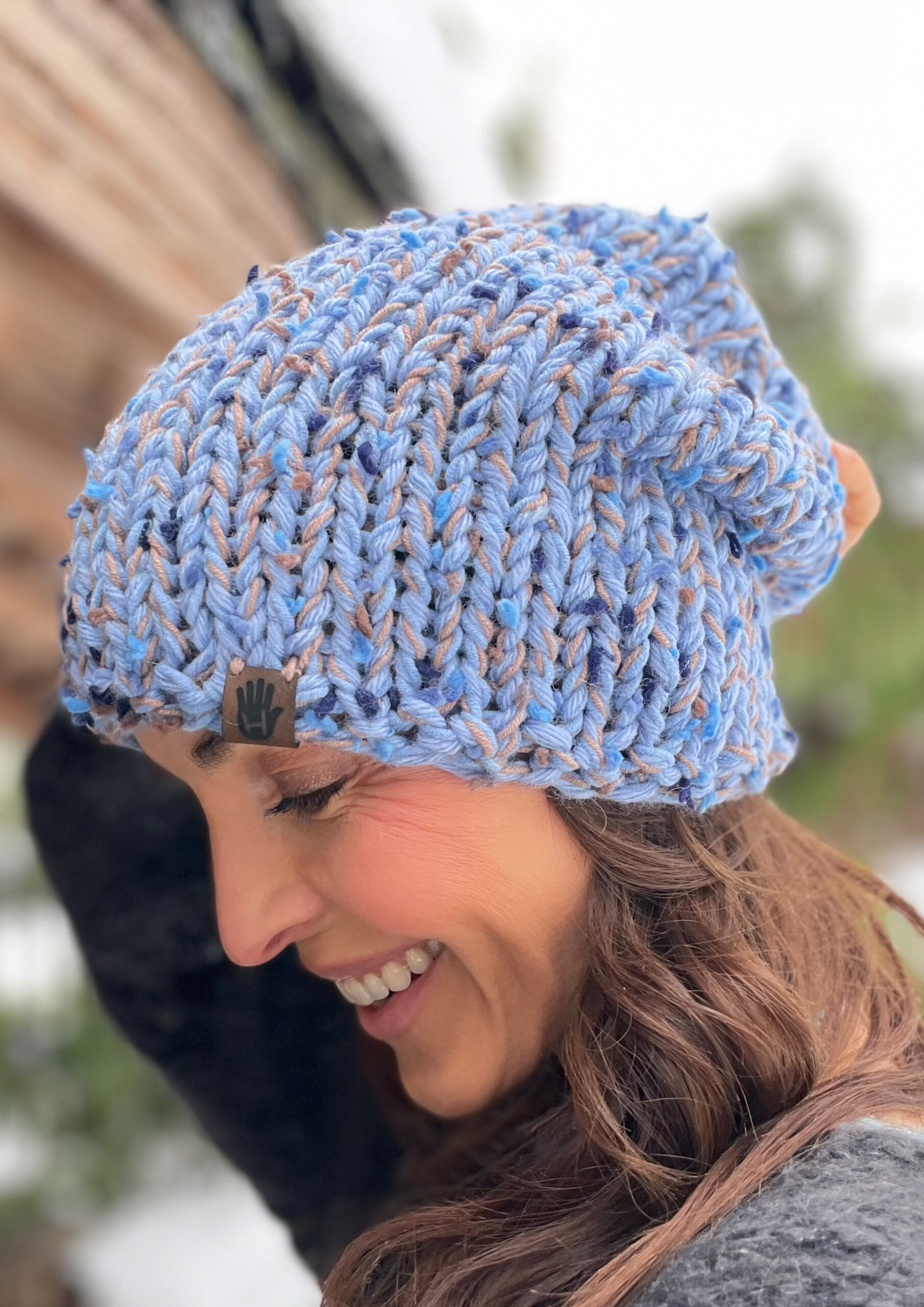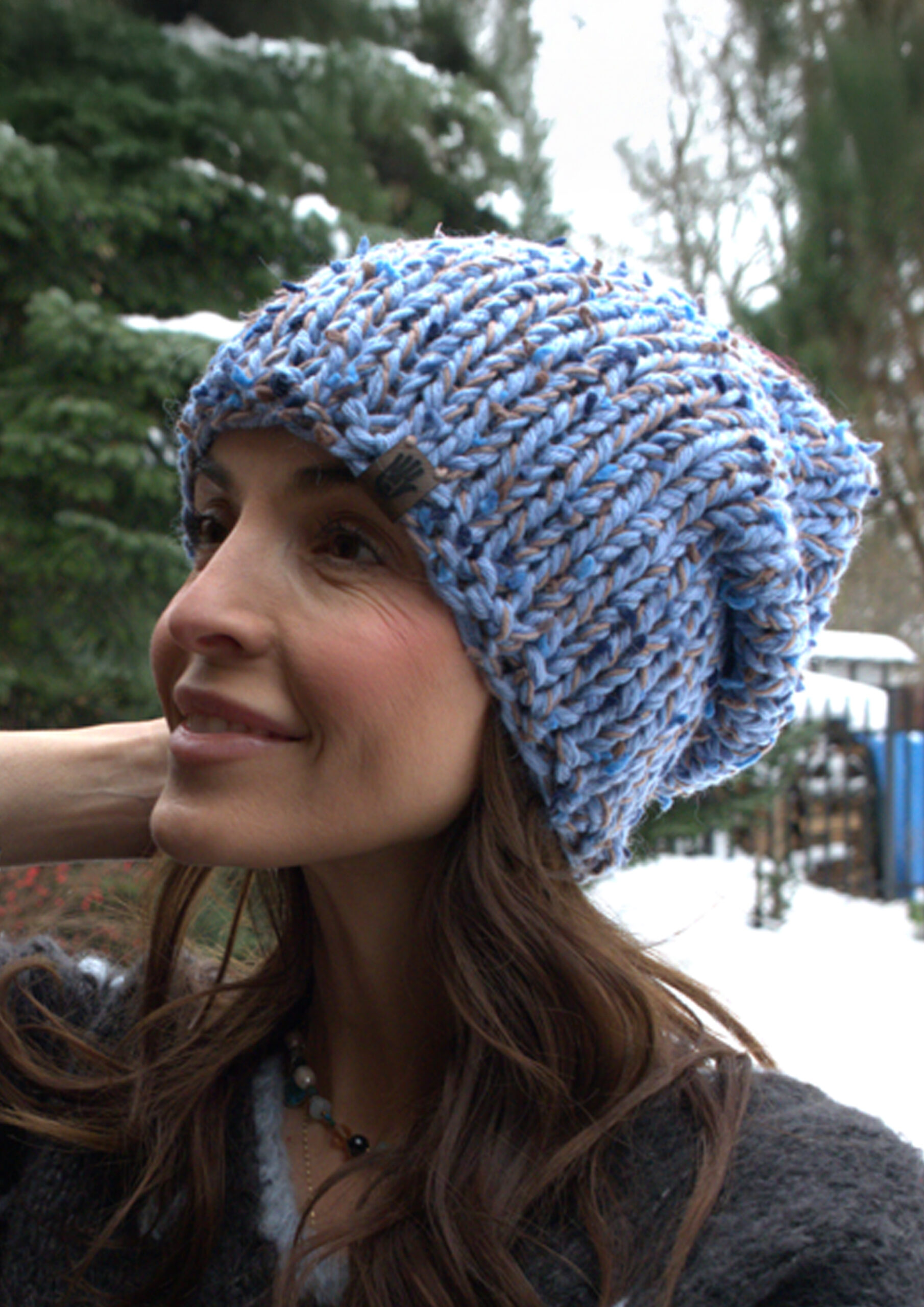 Komplet Błękitny Ogród to ręcznie robione dzieło wykonane na drutach bezszwowo z dbałością o każdy detal. Miękka i przyjemna w dotyku, doskonale dopasowuje się do głowy. Wewnątrz wszyta jest delikatna opaska polarowa, która zapewnia dodatkowy komfort noszenia w chłodne dni.
