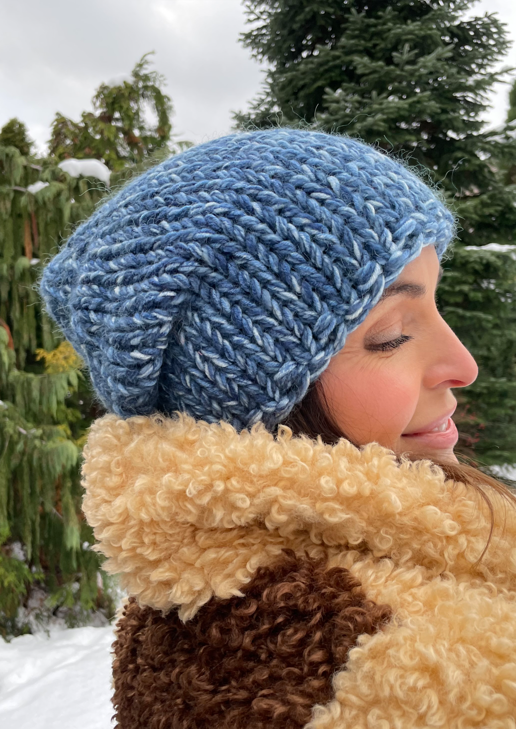 Czapka Blue Jeans to ręcznie robione dzieło wykonane na drutach bezszwowo z dbałością o każdy detal. Miękka i przyjemna w dotyku, doskonale dopasowuje się do głowy. Wewnątrz wszyte są delikatne opaski polarowe, które zapewniają dodatkowy komfort noszenia w chłodne dni.
