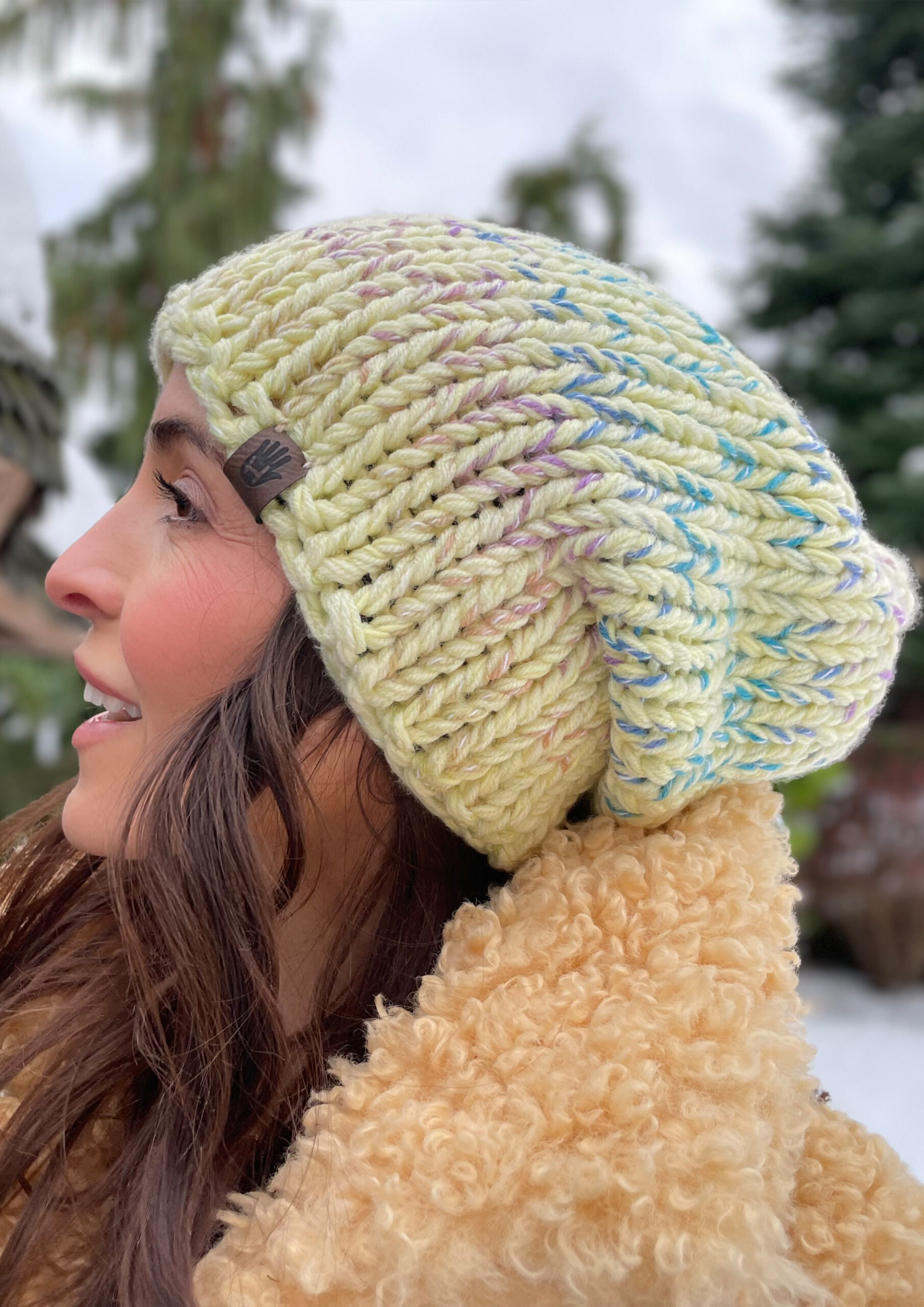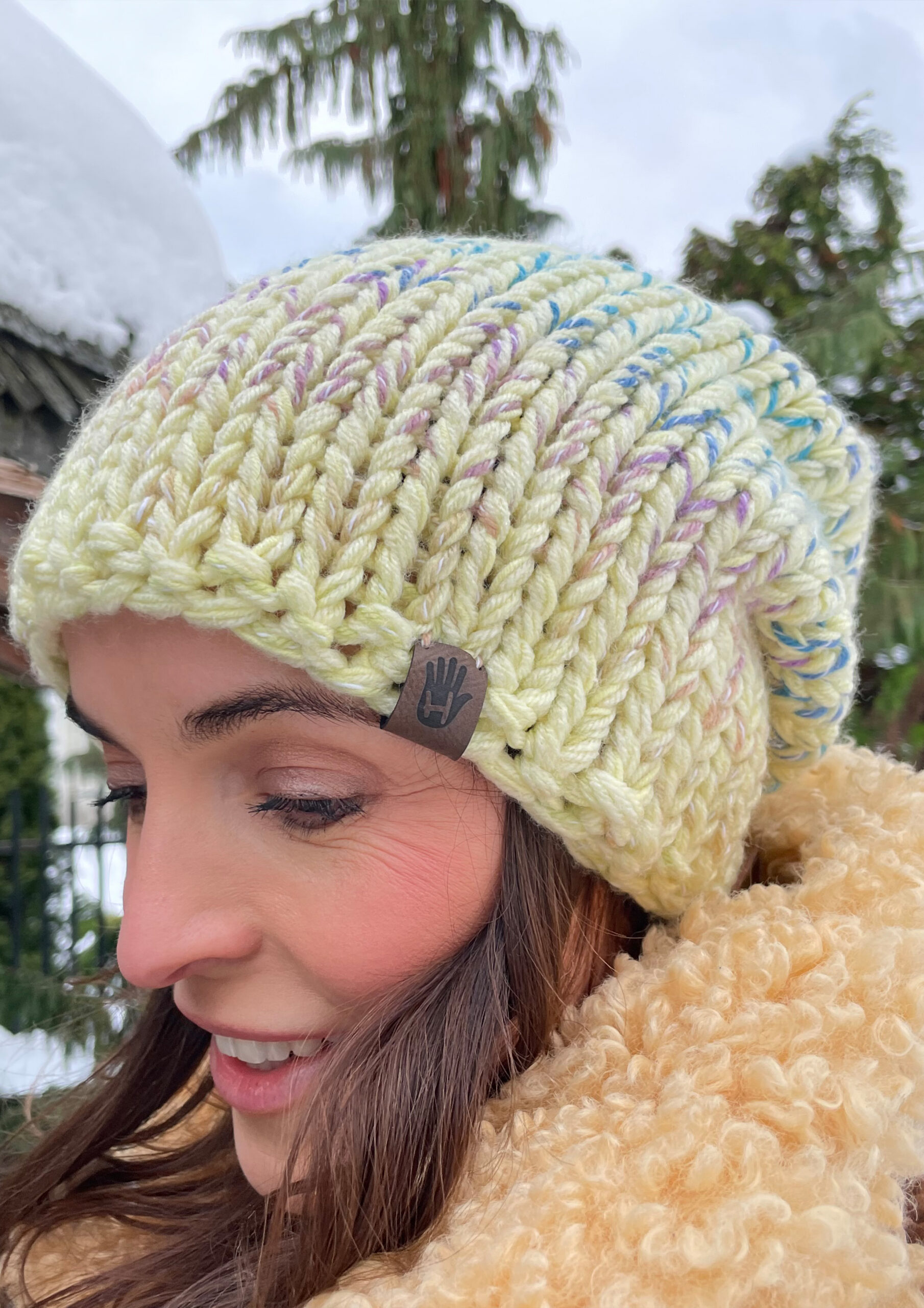 Czapka Krem z Limonką to ręcznie robione dzieło wykonane na drutach bezszwowo z dbałością o każdy detal. Miękka i przyjemna w dotyku, doskonale dopasowuje się do głowy. Wewnątrz wszyte są delikatne opaski polarowe, które zapewniają dodatkowy komfort noszenia w chłodne dni.