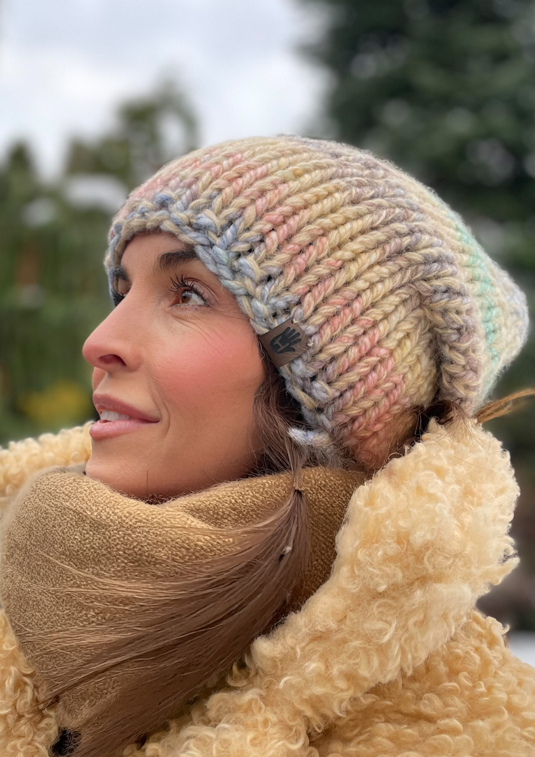 Czapka Spring Melody to ręcznie robione dzieło wykonane na drutach bezszwowo z dbałością o każdy detal. Miękka i przyjemna w dotyku, doskonale dopasowuje się do głowy. Wewnątrz wszyta jest delikatna opaska polarowa, która zapewnia dodatkowy komfort noszenia w chłodne dni.