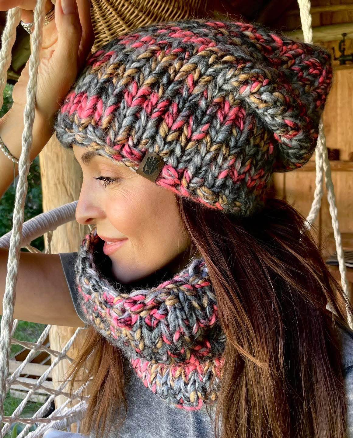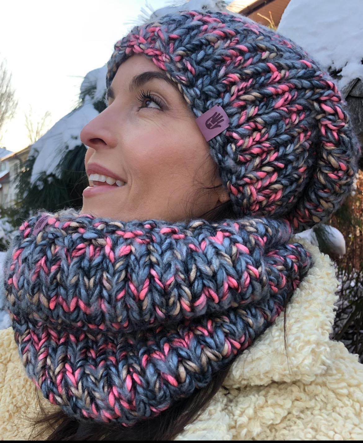 Czapka Szarość z różem to ręcznie robione dzieło wykonane na drutach bezszwowo z dbałością o każdy detal. Miękka i przyjemna w dotyku, doskonale dopasowuje się do głowy. Wewnątrz wszyta jest delikatna opaska polarowa, która zapewnia dodatkowy komfort noszenia w chłodne dni.