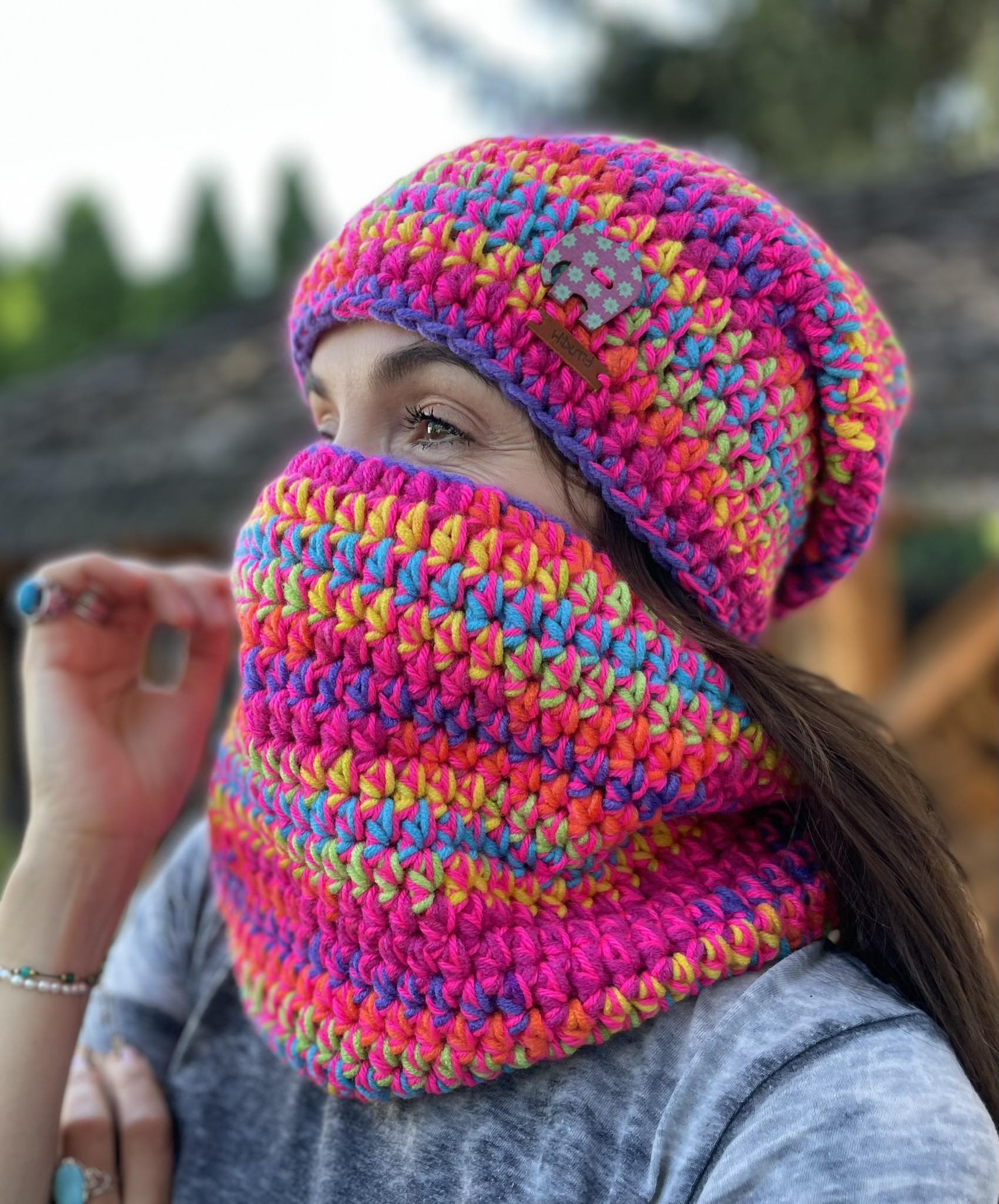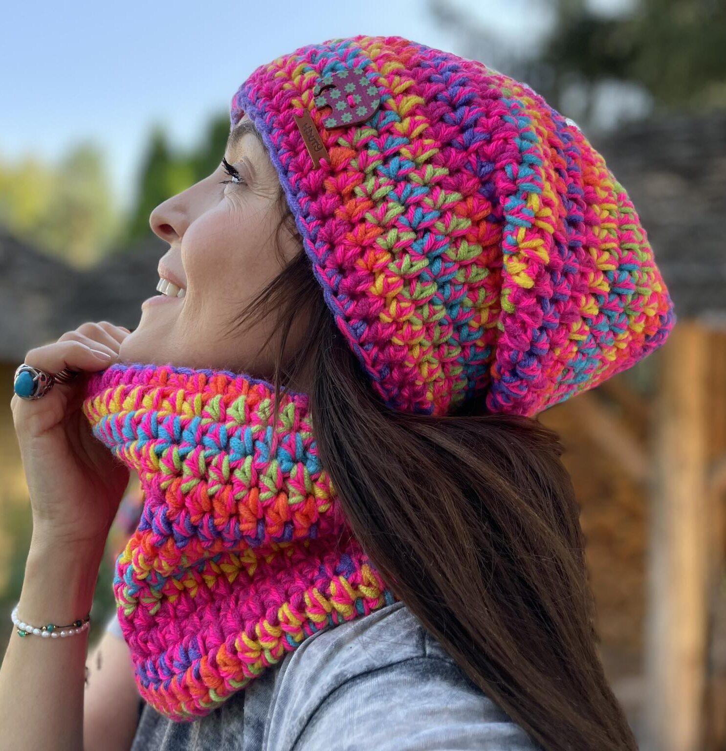Komplet Juliet to ręcznie robione dzieło wykonane szydełkiem bezszwowo z dbałością o każdy detal. Miękki i przyjemny w dotyku, doskonale dopasowuje się do głowy. Wewnątrz wszyte są delikatne opaski polarowe, które zapewniają dodatkowy komfort noszenia w chłodne dni.