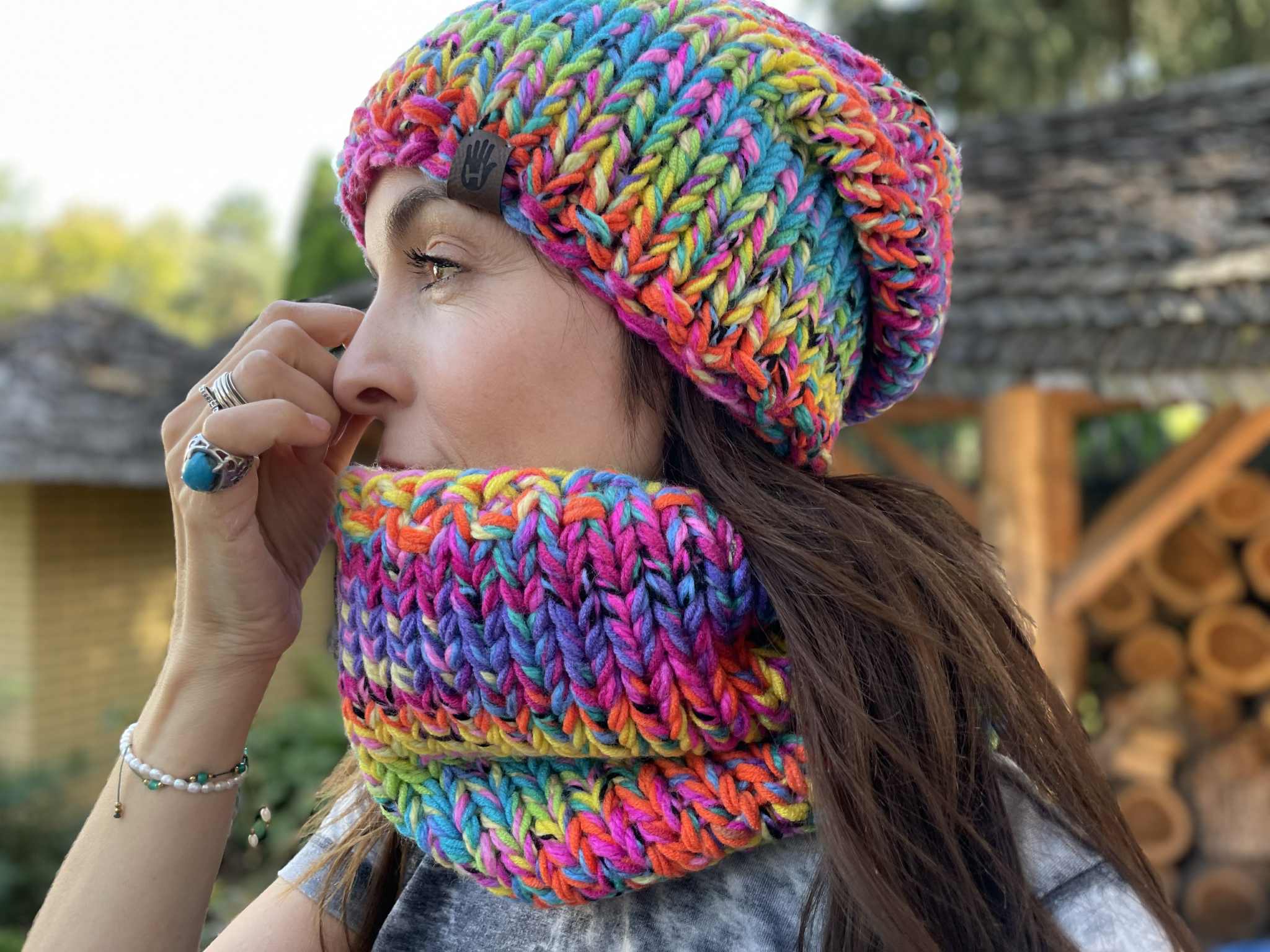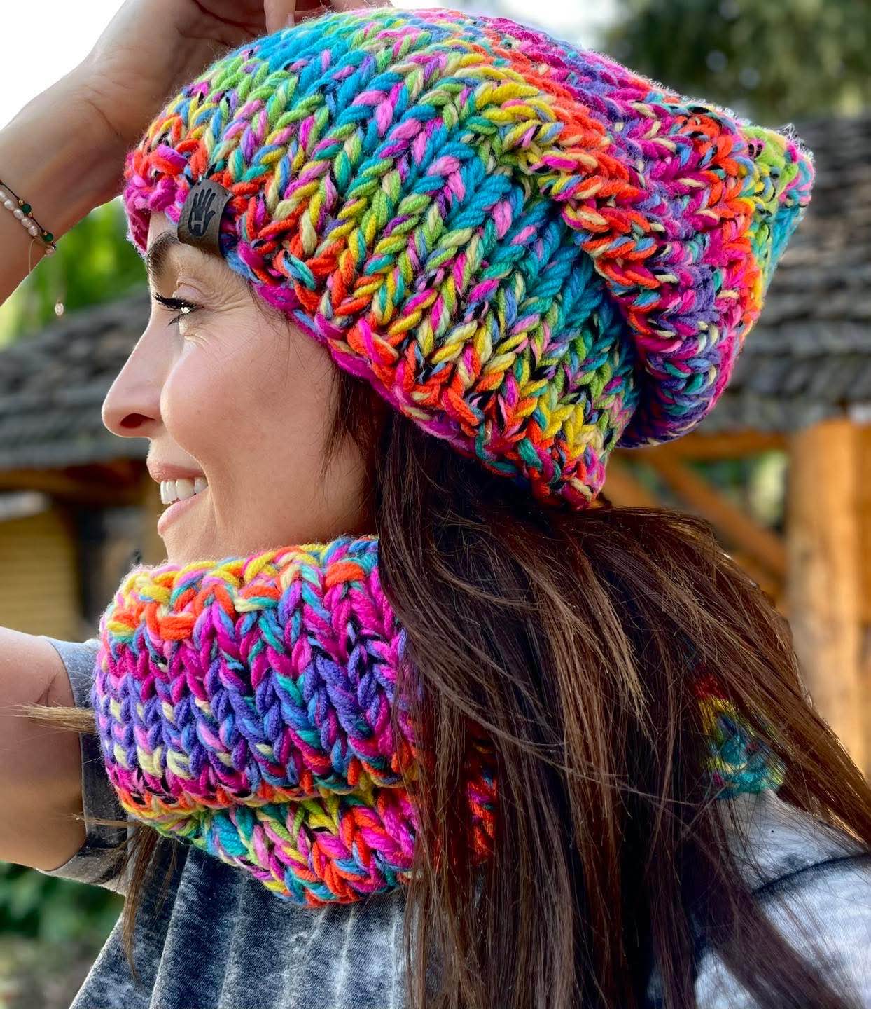 Komplet Pastelowa tęcza to ręcznie robione dzieło wykonane na drutach bezszwowo z dbałością o każdy detal. Miękki i przyjemny w dotyku, doskonale dopasowuje się do głowy. Wewnątrz wszyte są delikatne opaski polarowe, które zapewniają dodatkowy komfort noszenia w chłodne dni.